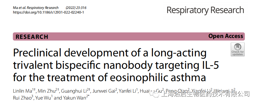 科研力量 I 九州酷游 ku游生物长效IL-5纳米抗体研究成果于《Respiratory Research》发表!